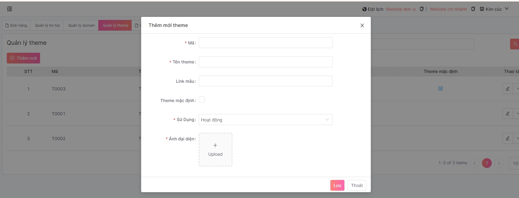 Nhập thông tin theme ->Lưu