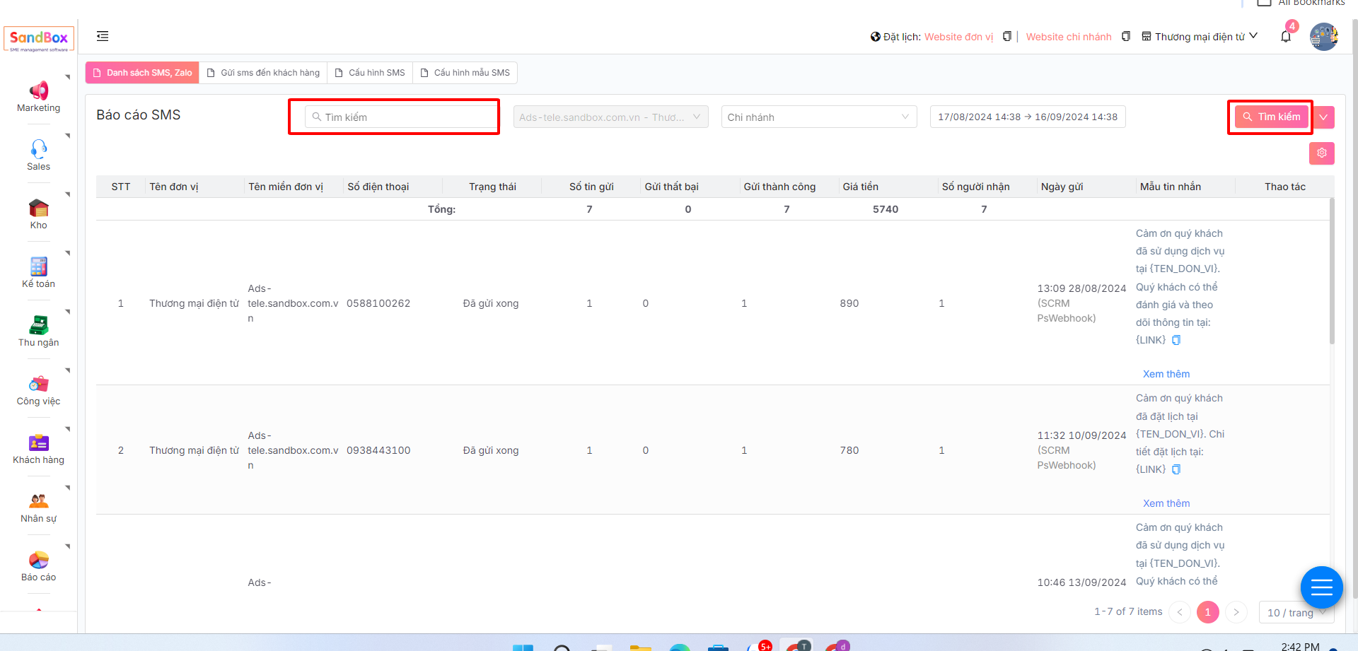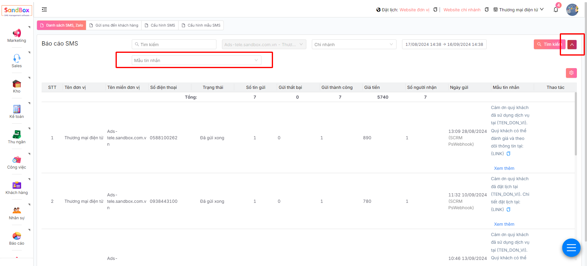 Có thể lọc SMS theo chi nhánh của đơn vị bằng cách nhấn vào ô <img src="https://content.gitbook.com/content/KnaMljuquxKOnflZEqLy/blobs/LTHVQaIO6gLWDuizuY5y/image.png" alt="" data-size="line">&#x20;