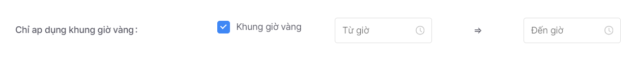 * **Chỉ áp dụng khung giờ vàng:** Tích để chọn áp dụng khuyến mại tại 1 khoảng thời gian trong ngày.