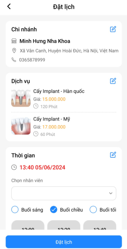 Khách hàng tiến hàng nhập thông tin đặt lịch