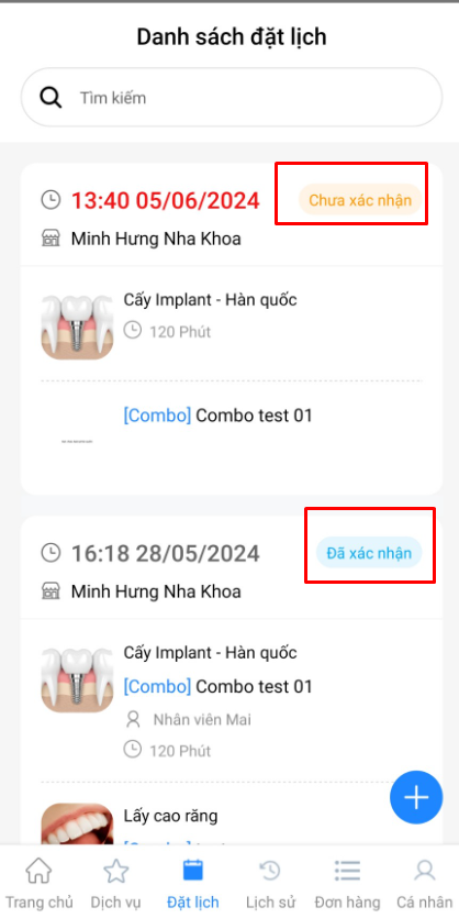 Sau khi đặt lịch thành công, khách hàng có thể quan sát trạng thái lịch hẹn tại màn danh sách lịch hẹn