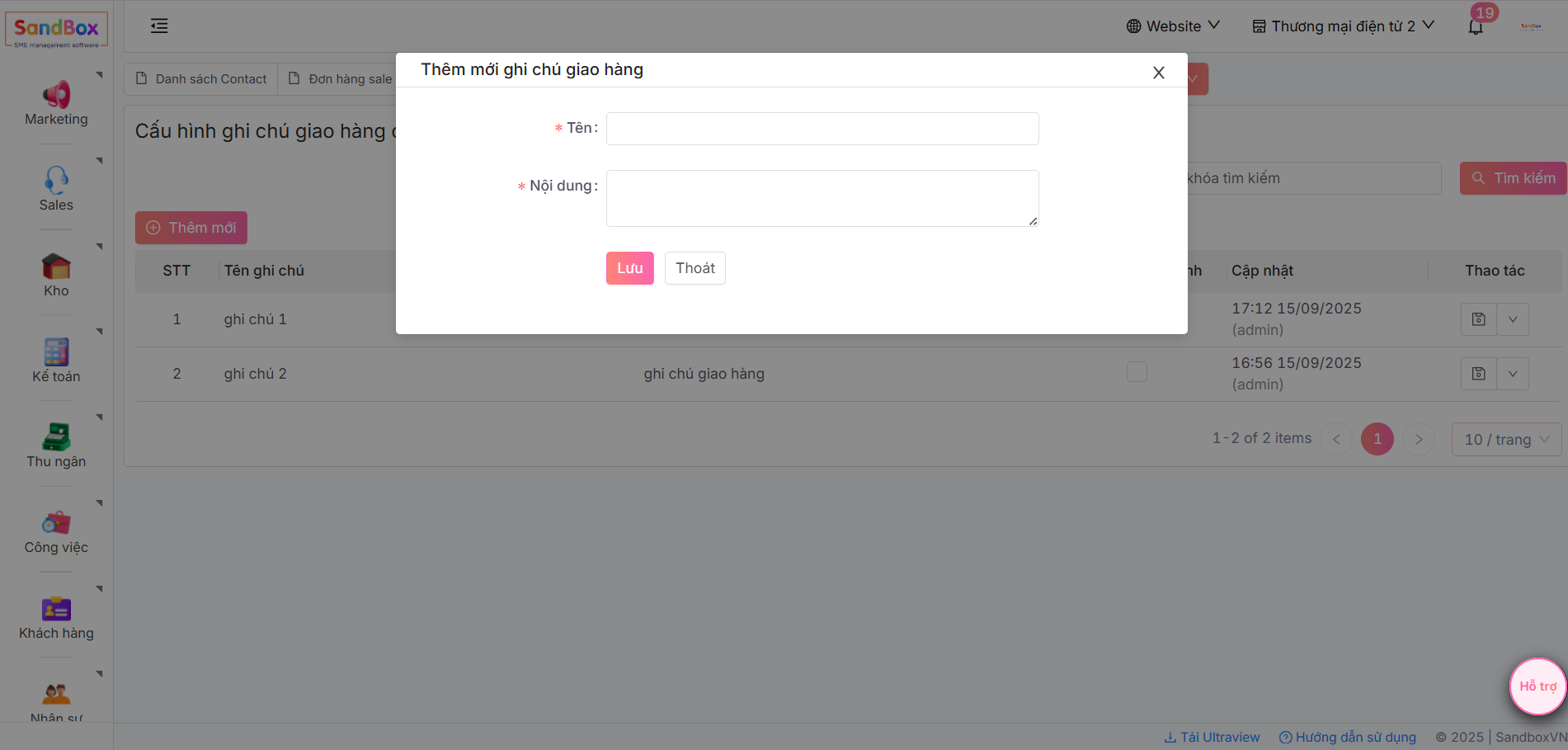 Click vào icon tại cột Thao tác. Bạn có thể Chỉnh sửa nội dung ghi chú hoặc Xóa ghi chú đó nếu không sử dụng nữa.