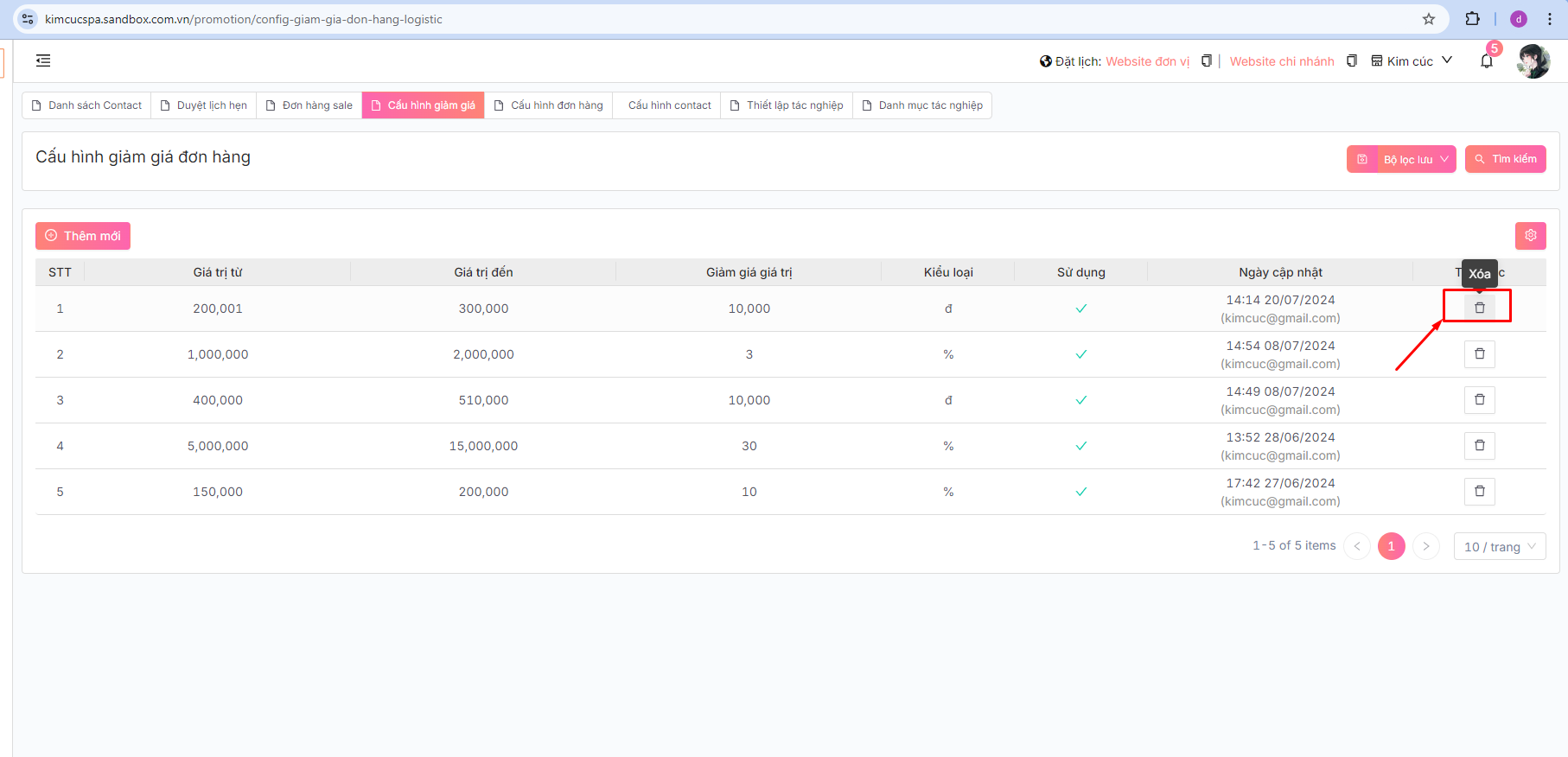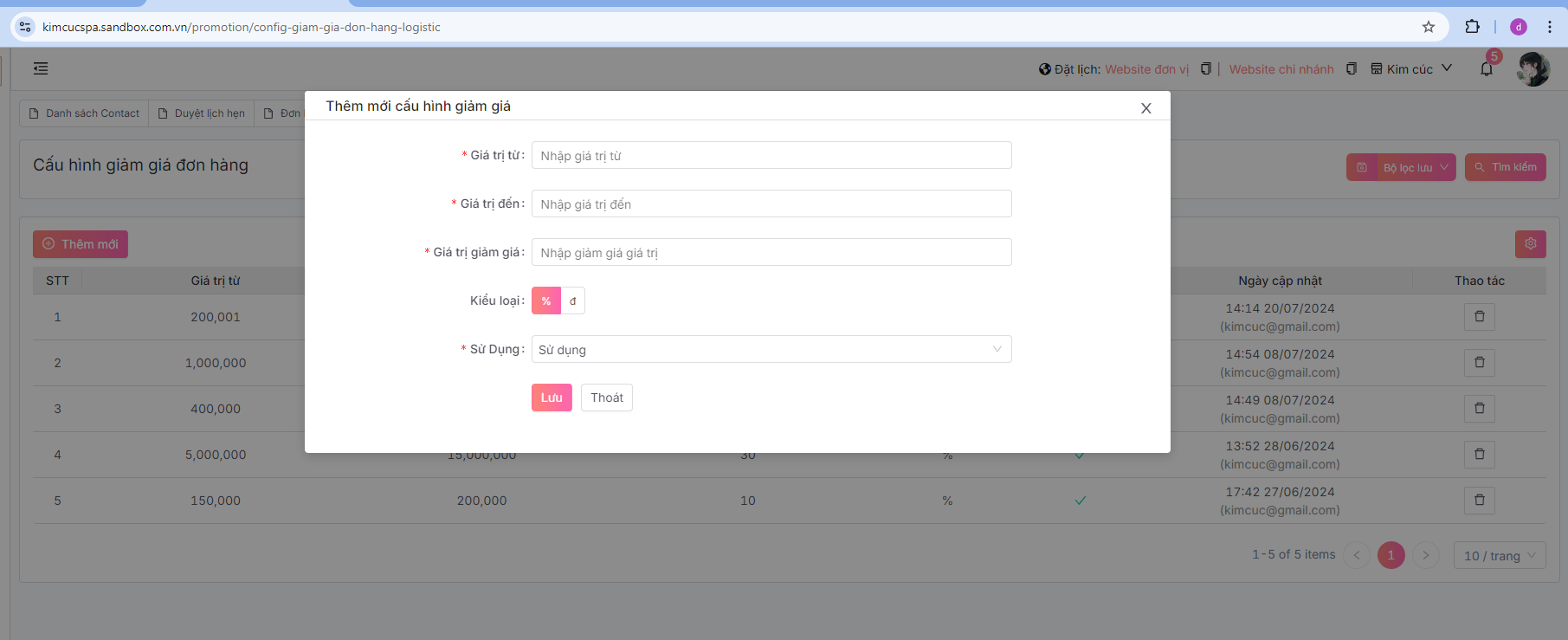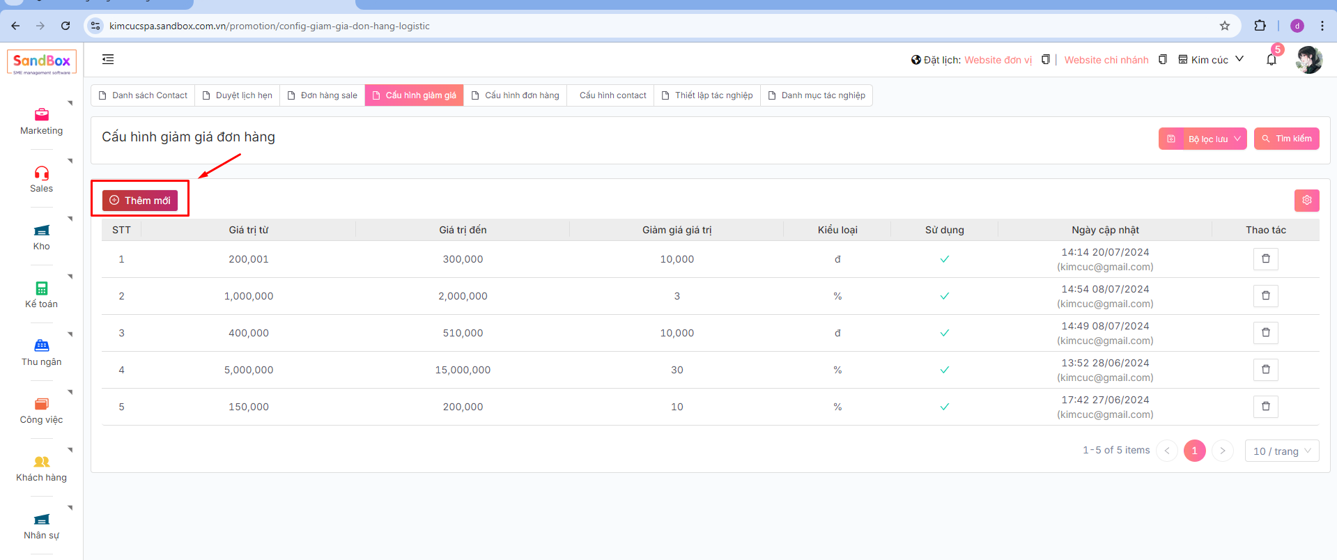 Tại màn hình hiển thị, ấn Thêm mới để setup cấu hình giảm giá<br>