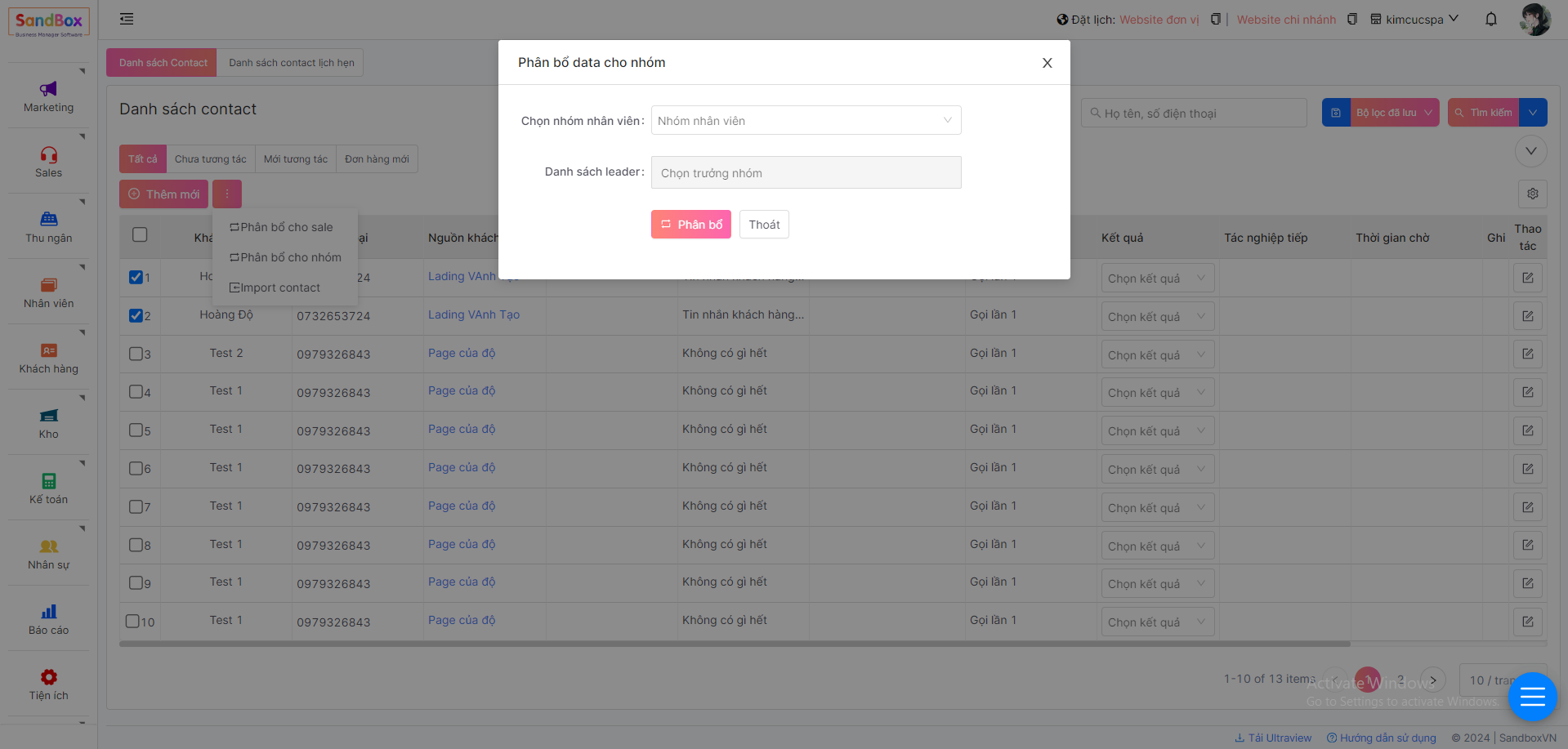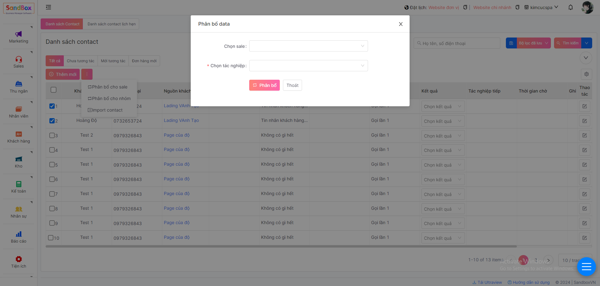 2. Phân bổ contact sale thủ công