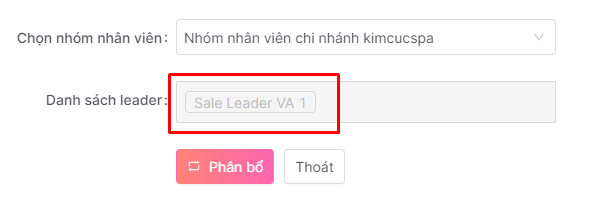 Chọn nhóm muốn phân bổ hệ thống sẽ tự động fill danh sách leader của nhóm đó