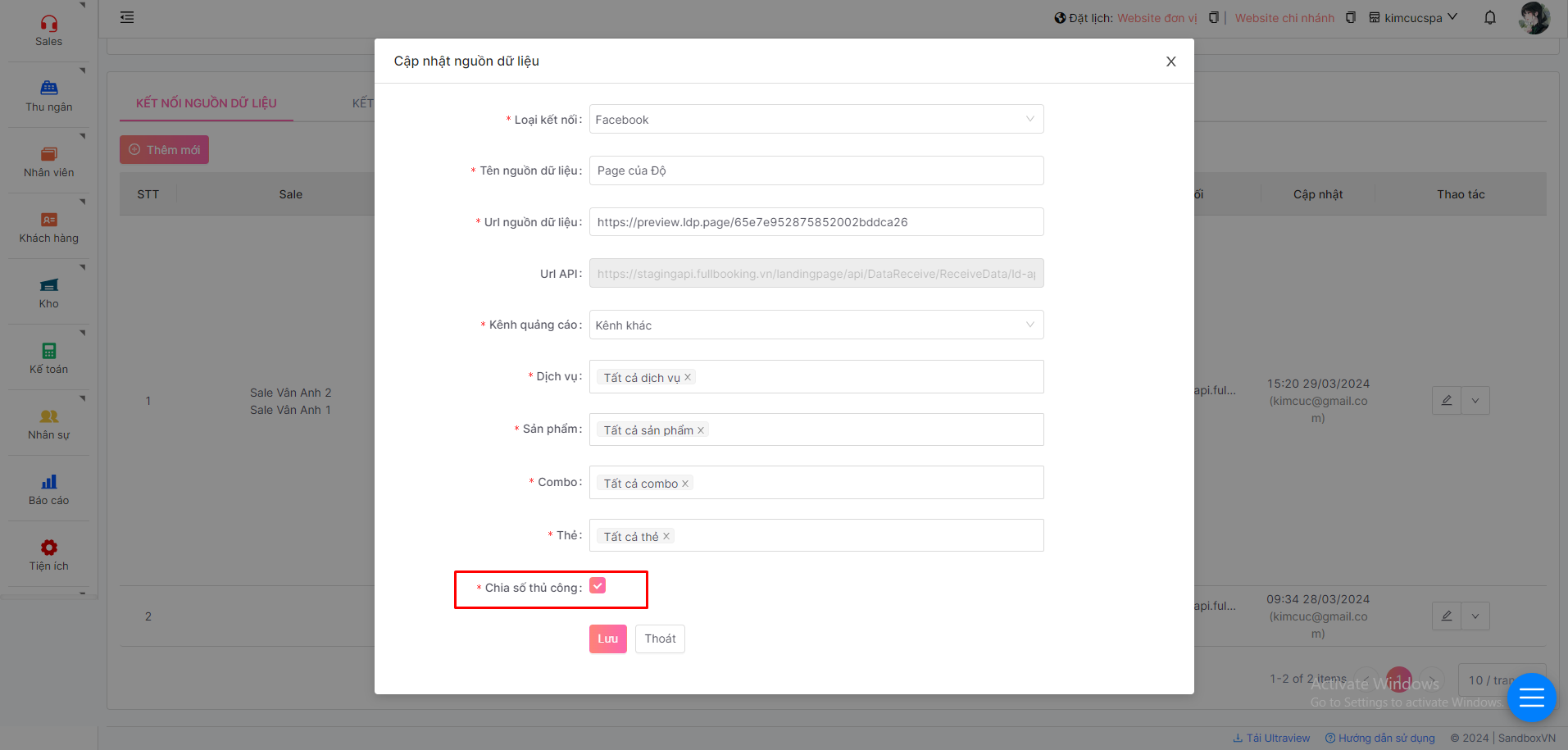 Khi nguồn dự liệu bật chia số thủ công thì các contact từ nguồn dữ liệu đổ về sẽ phải chia sale thủ công cho contact đó