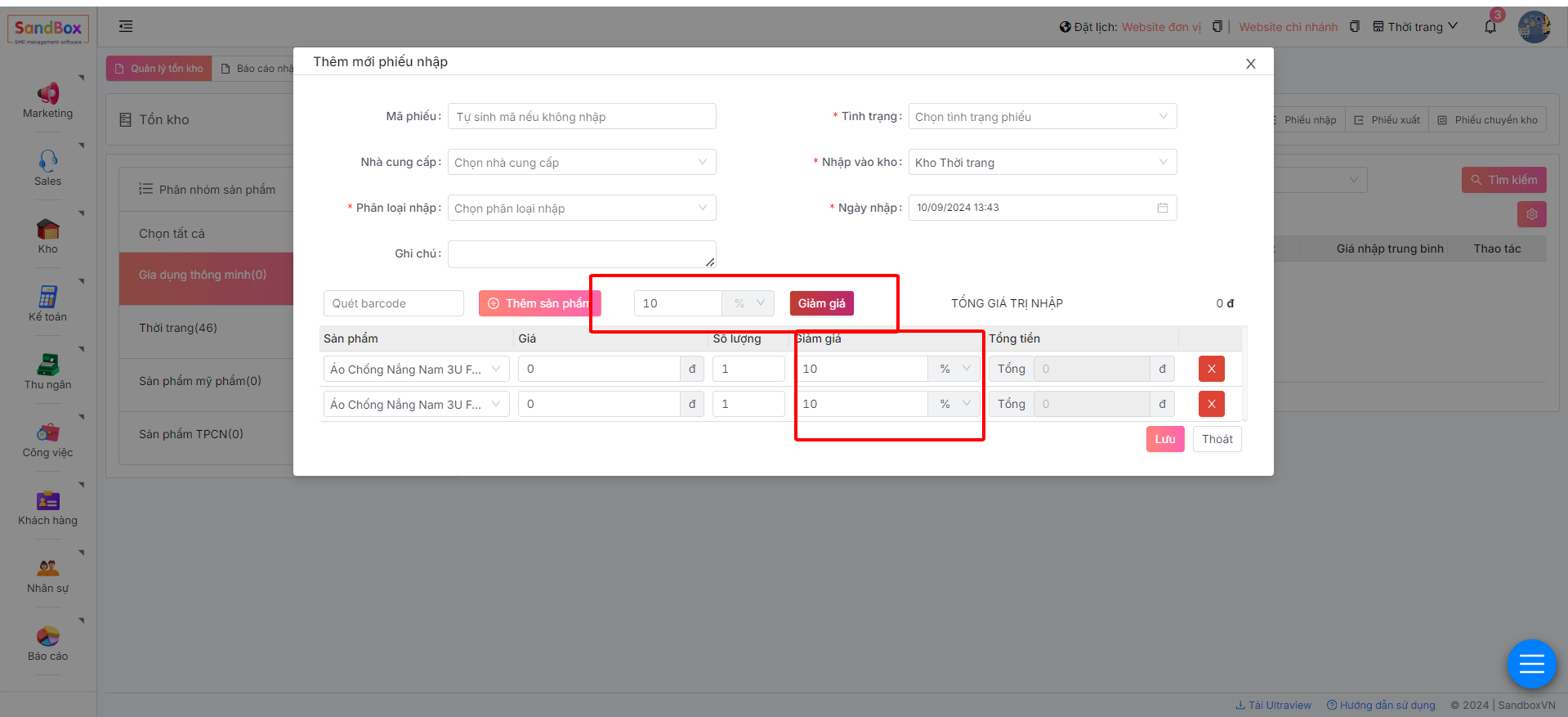 Ngoài ra, nếu bạn có nhiều sản phẩm và muốn áp dụng giảm giá đồng loạt, bạn có thể chọn cách nhập giảm giá và sau đó nhấn vào nút "Giảm giá" để áp dụng giảm giá cho tất cả các sản phẩm.