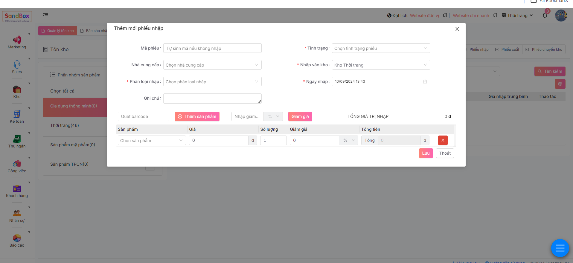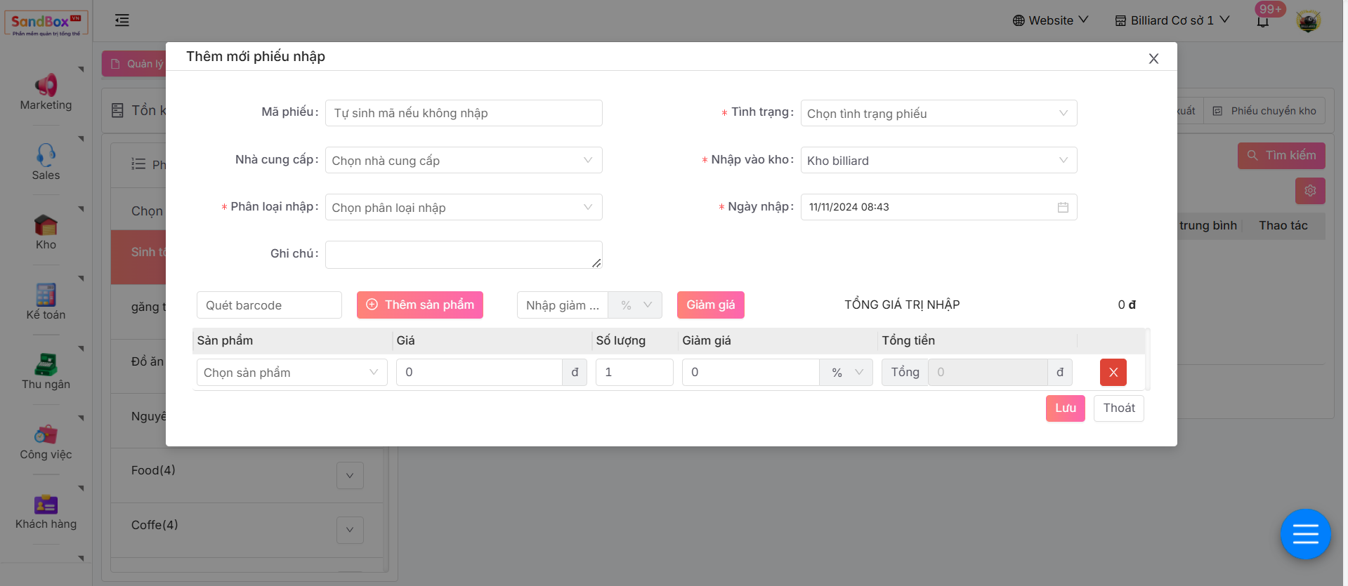 -> Hiển thị form **Thêm mới** **phiếu nhập**