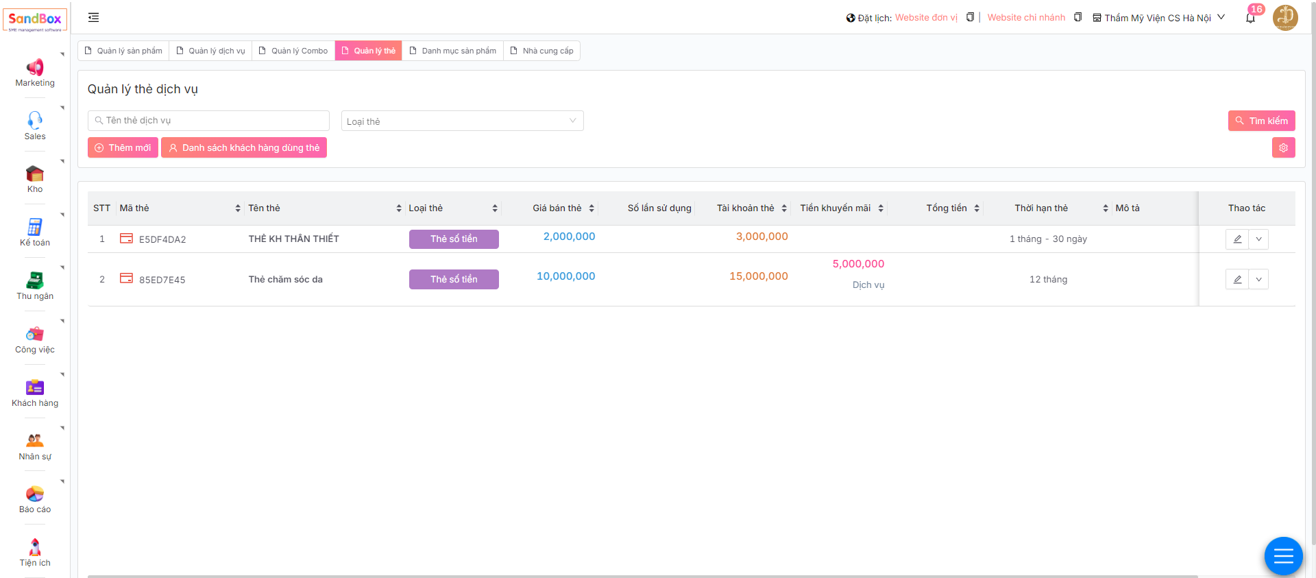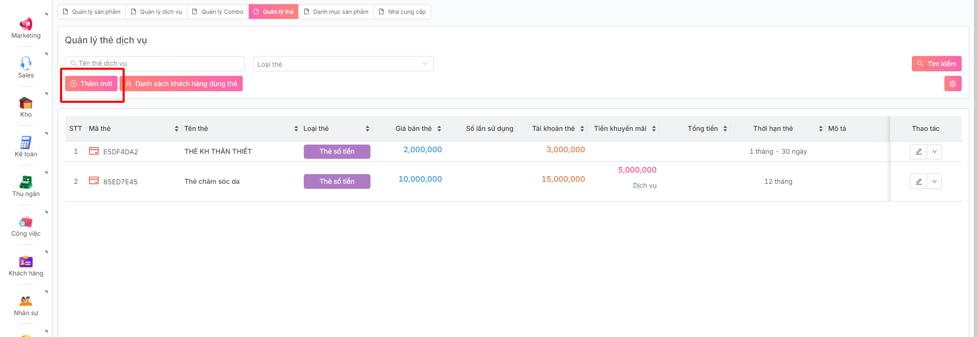 2.3. Muốn thêm mới Thẻ dịch vụ chọn **Thêm mới**