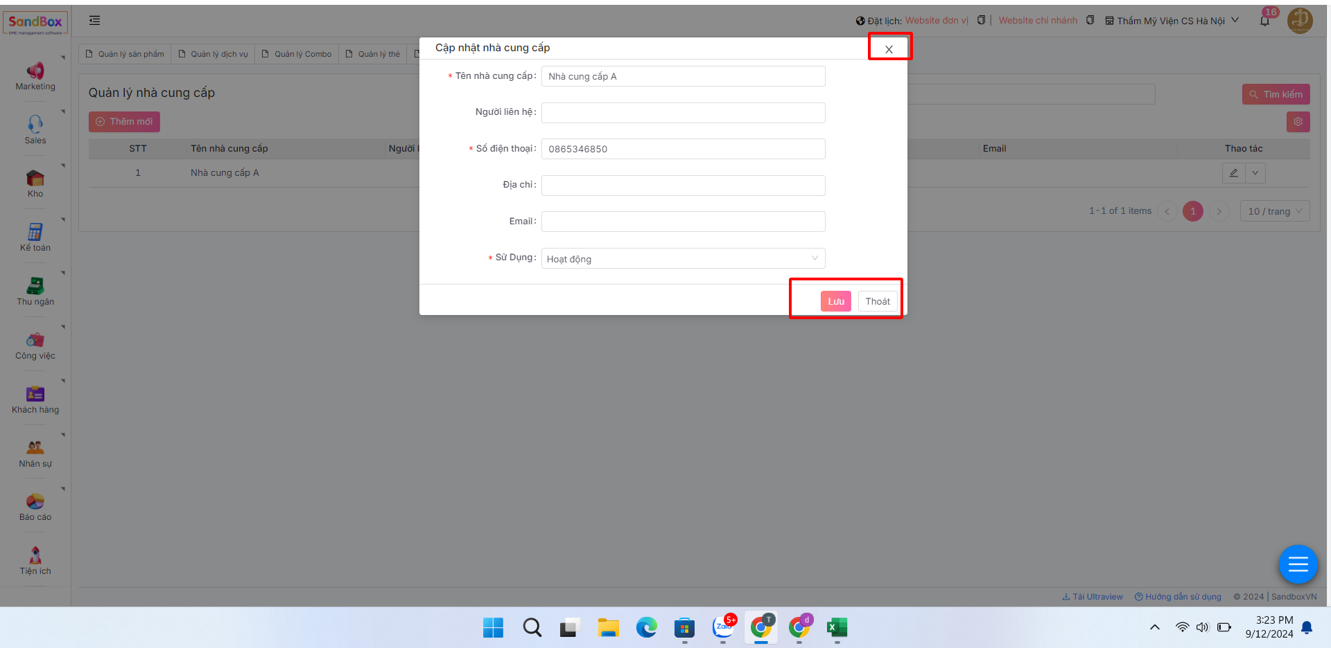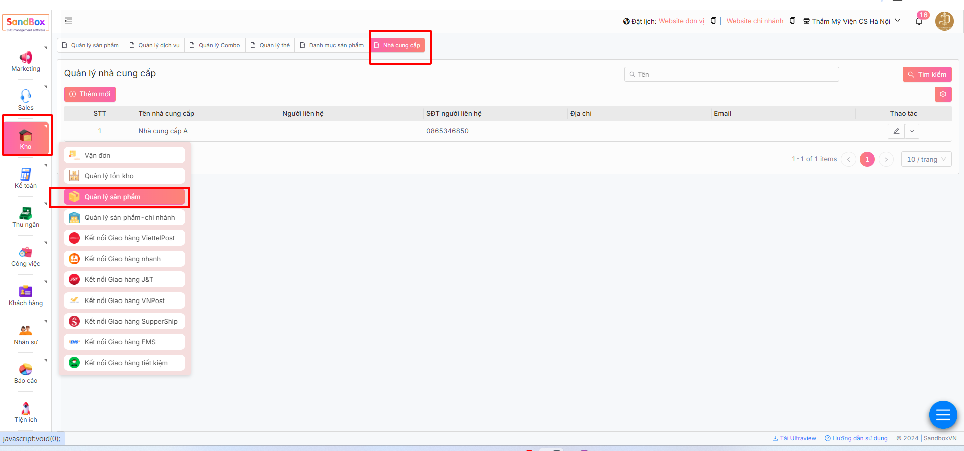 **Lưu ý**:Sau khi tạo nhà cung cấp thành công, bạn có thể **Xóa** hoặc **Chỉnh sửa** để đảm bảo tính chính xác thông tin và quản lý nhà cung cấp.