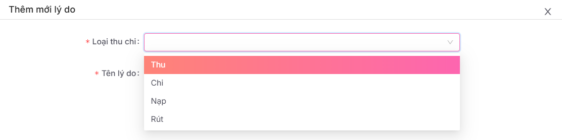 * Tên lý do: Nhập tên lý do cho thu chi