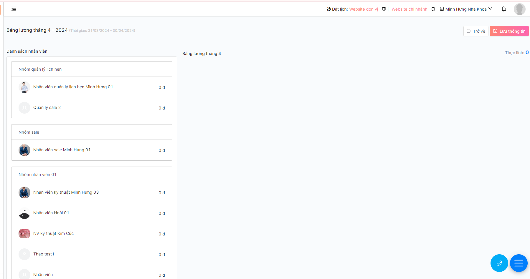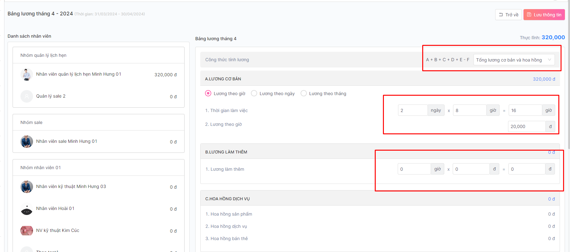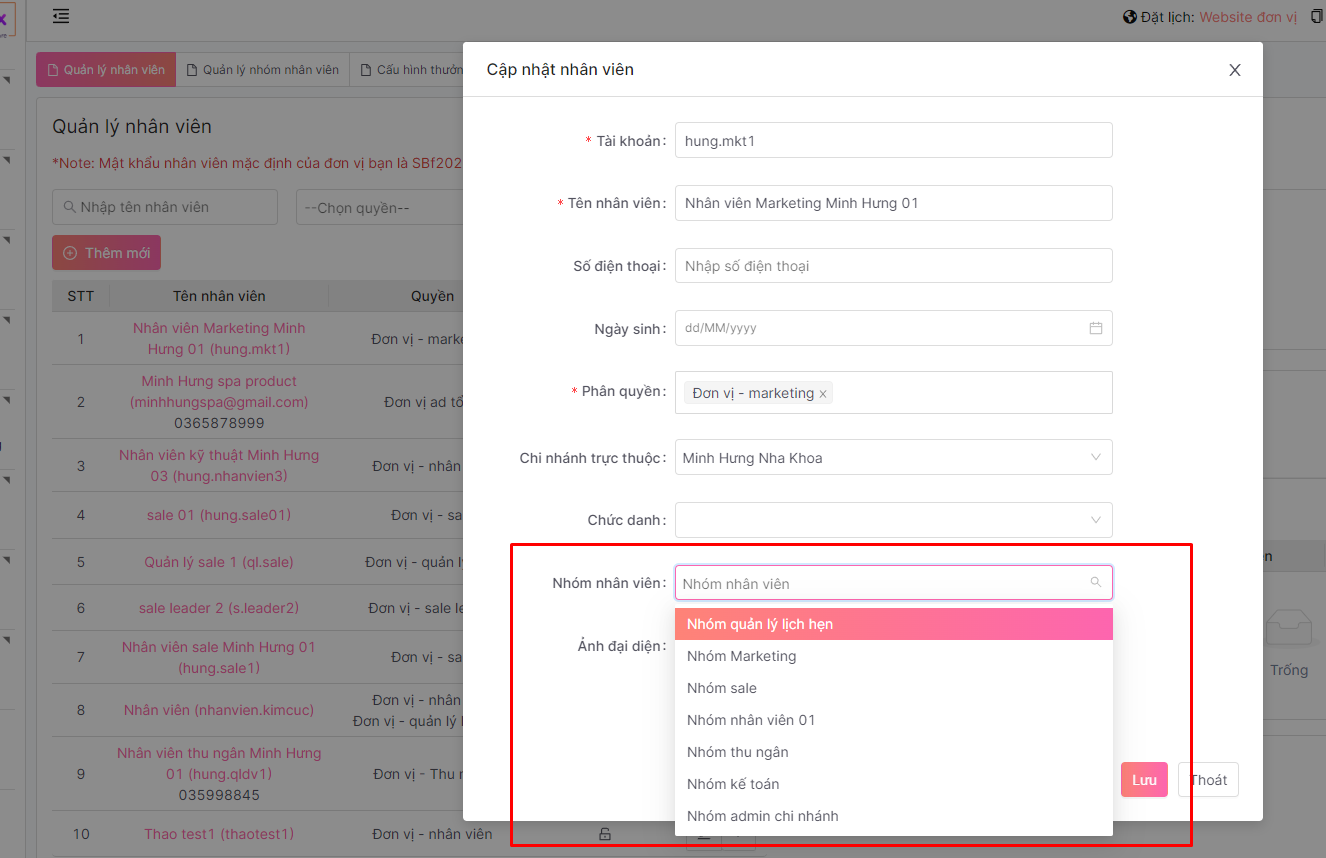 **Lưu ý: Để thông tin nhân viên xuất hiện trên bảng lương, cần phải khai báo nhóm nhân viên cho họ.**