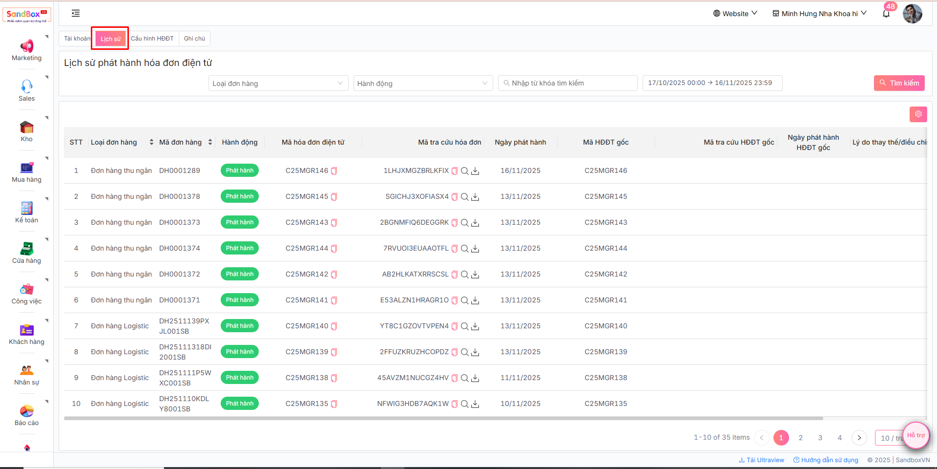 4. **Lịch sử phát hành hóa đơn điện tử**