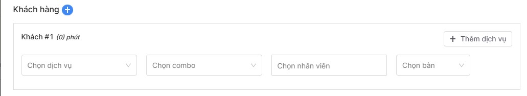Chọn dịch vụ, combo, nhân viên, bàn cho khách hàng. Nếu muốn thêm dịch vụ ấn nút Thêm dịch vụ