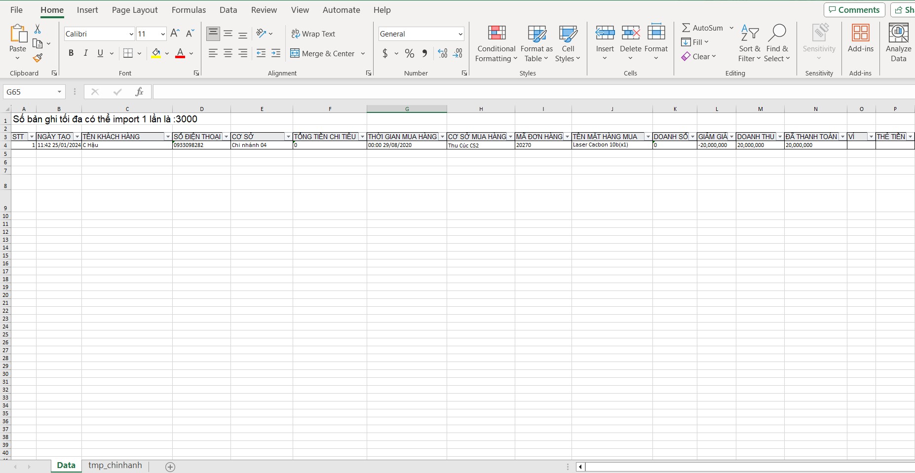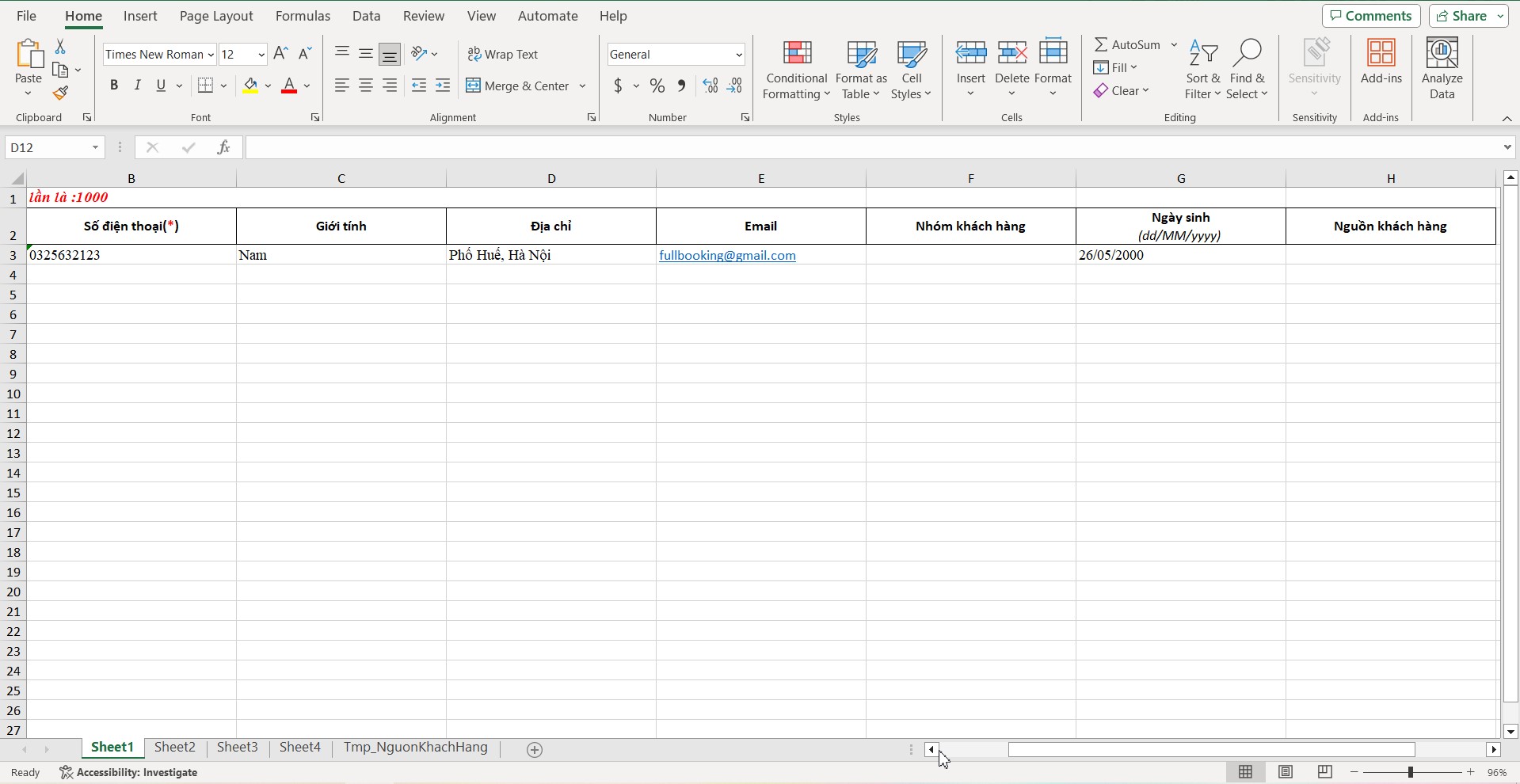 Anh/chị sẽ điền danh sách khách hàng muốn tải lên vào file này. ( Với những trường có dấu \* cần điền đầy đủ).
