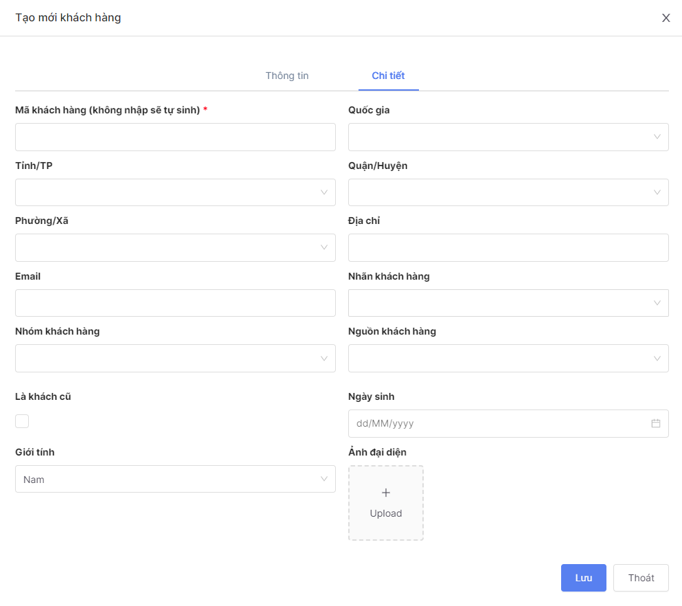 * Tại tab **Chi tiết**: anh/chị có thể điền hoặc bỏ trống