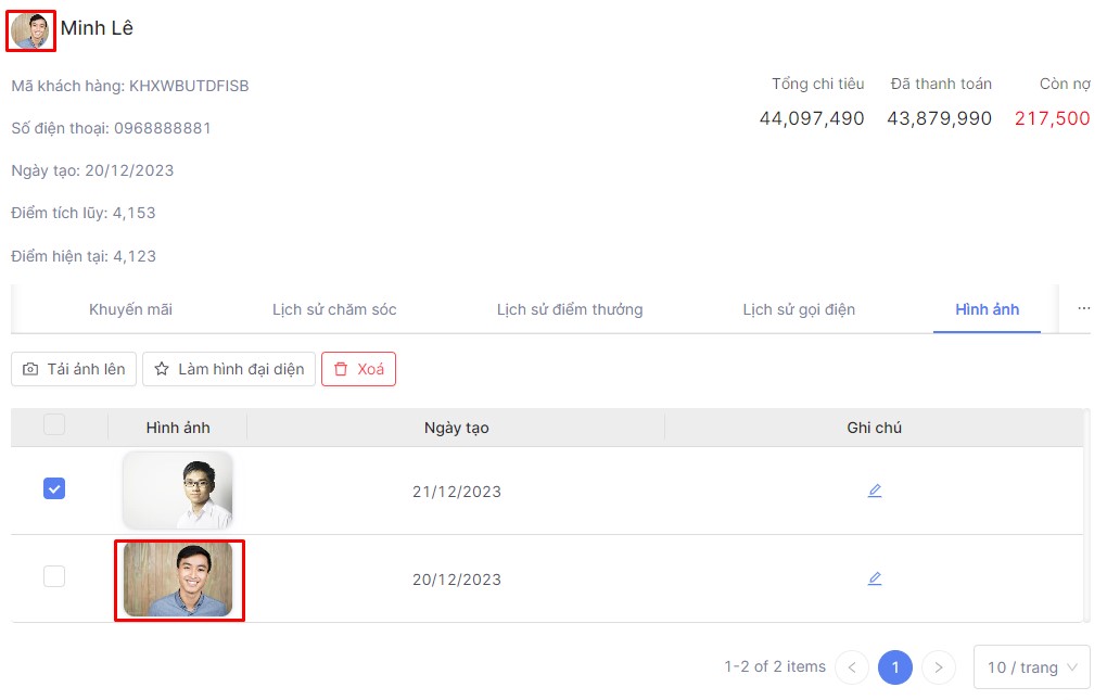 Làm hình đại diện: anh/chị tích vào hình ảnh muốn làm ảnh đại diện cho khách sau đó nhấn vào