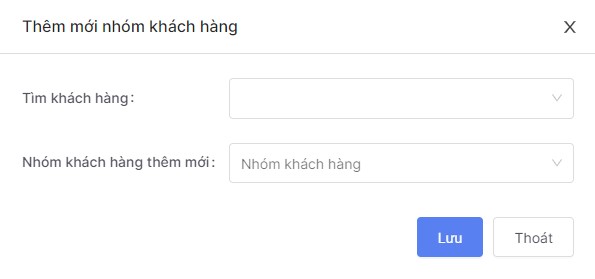 Nhóm khách hàng thêm mới: anh/chị chọn nhóm khách hàng muốn thêm cho khách tại đây.