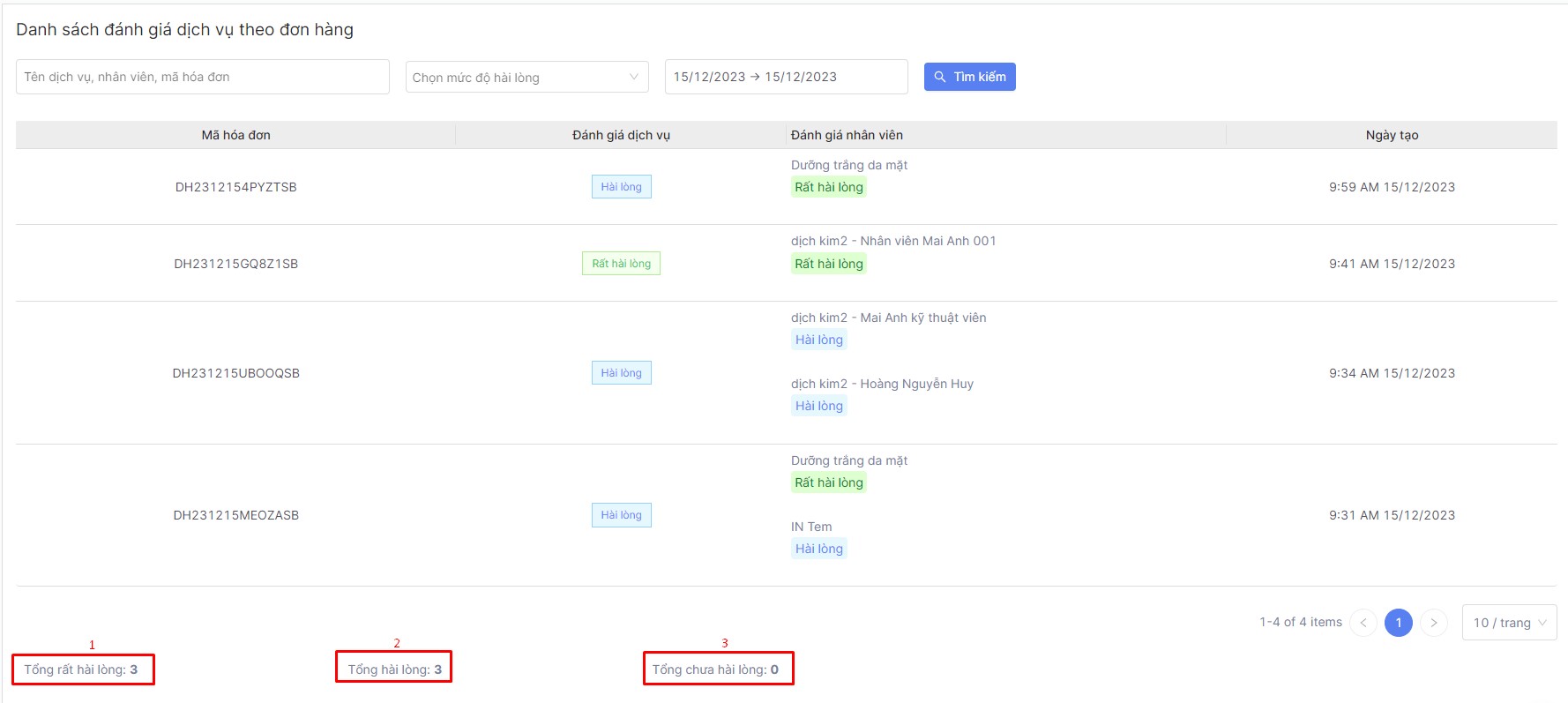 Chủ doanh nghiệp có thể xem kết quả phàn hồi của khách về dịch vụ của doanh nghiệp mình tại màn này.