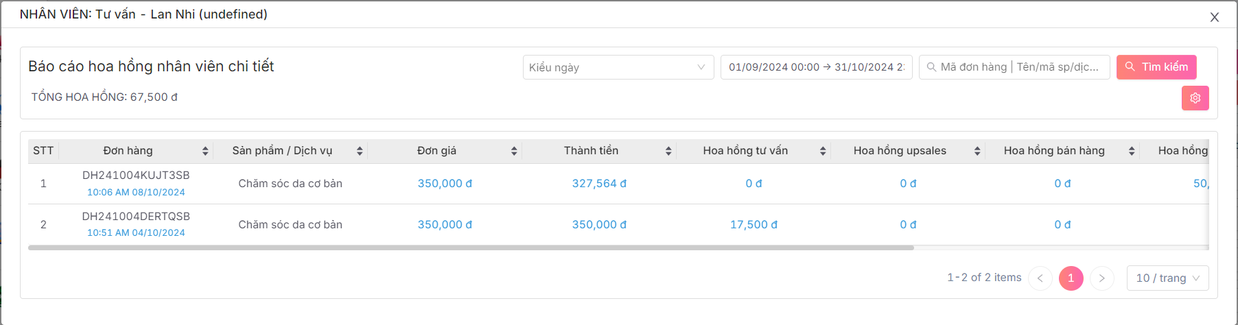 Báo cáo chi tiết đơn hàng giúp doanh nghiệp có thể theo dõi hoa hồng một cách chính xác cho từng nhân viên dựa trên doanh số bán hàng của họ, tránh sai sót và tranh chấp trong cách tính.